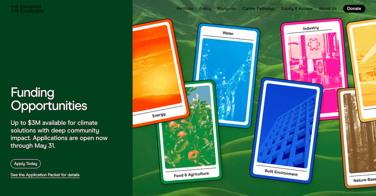 With a mission to foster groundbreaking ideas with tangible community impact, Elemental Excelerator offers funding for entrepreneurs seeking to make a difference.
