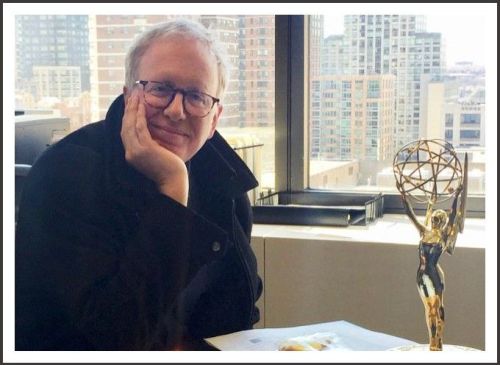 Andrew Wilk with one of his Emmys, at his Lincoln Center office.